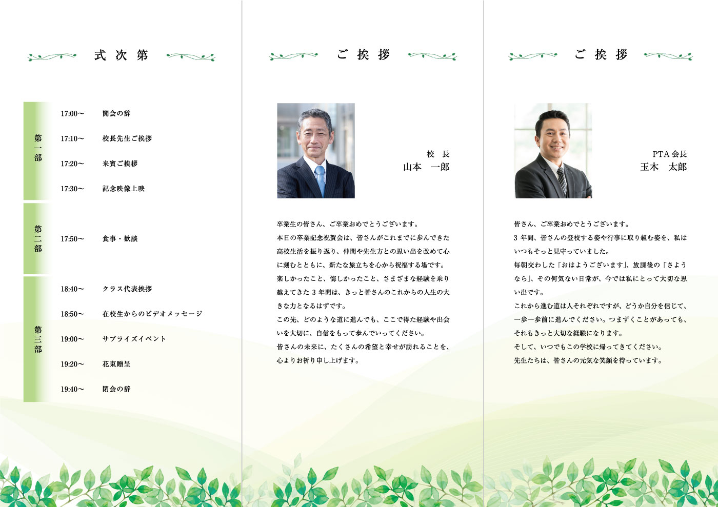 制作デザイン、写真調整、印刷、三折加工を含めた金額です。