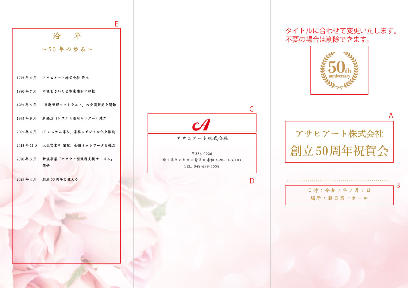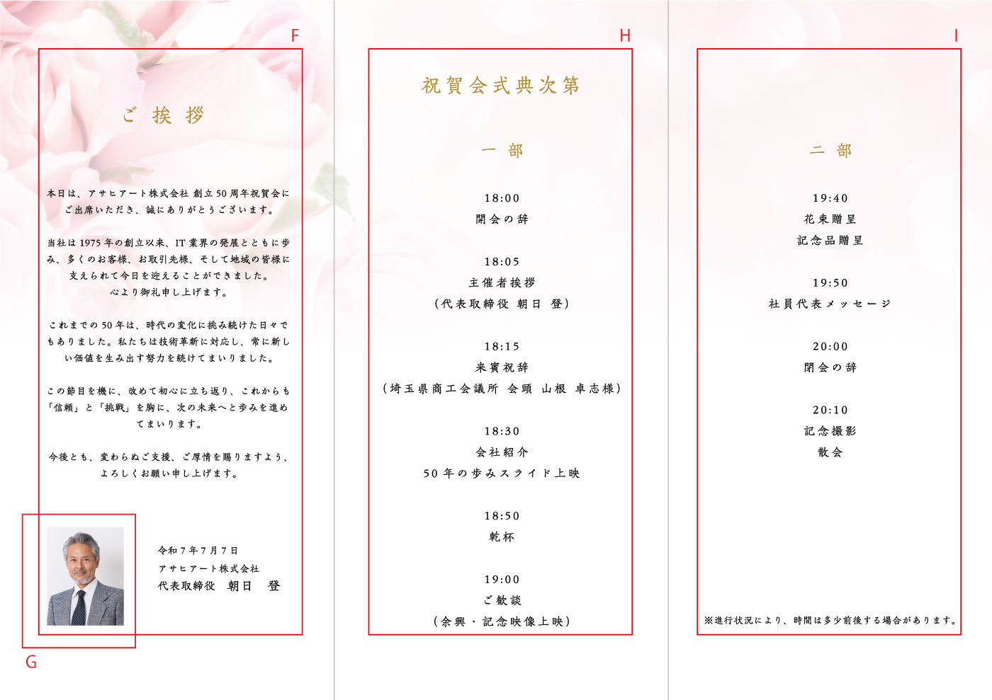 写真3点とテキストを2箇所レイアウトできます。テキストは、式次第やお礼の言葉、故人との思い出など自由です。